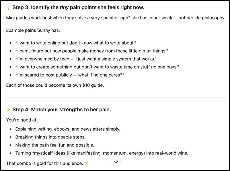 Then it gave me some of Sunny’s pain points and how to match them with what I’m best at: