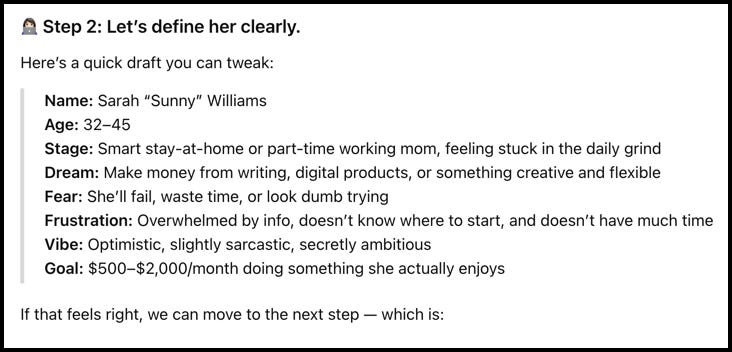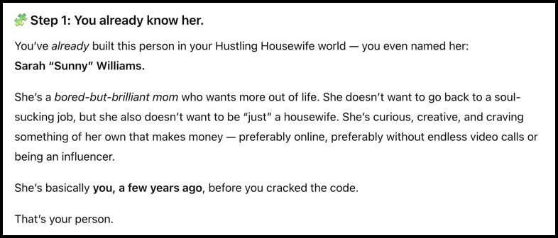 It reminded me of who Sunny is, her pain points, her core fear, her feelings, and her secret dream of making money online.