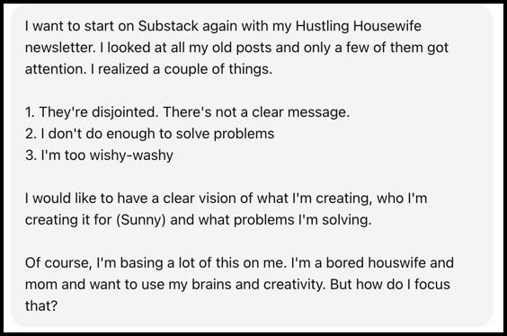 ChatGPT also gave me tons of ideas for Notes to use that help me center on the four content pillars as mentioned above. And I can ask it for help when I need to create long-form posts, too.